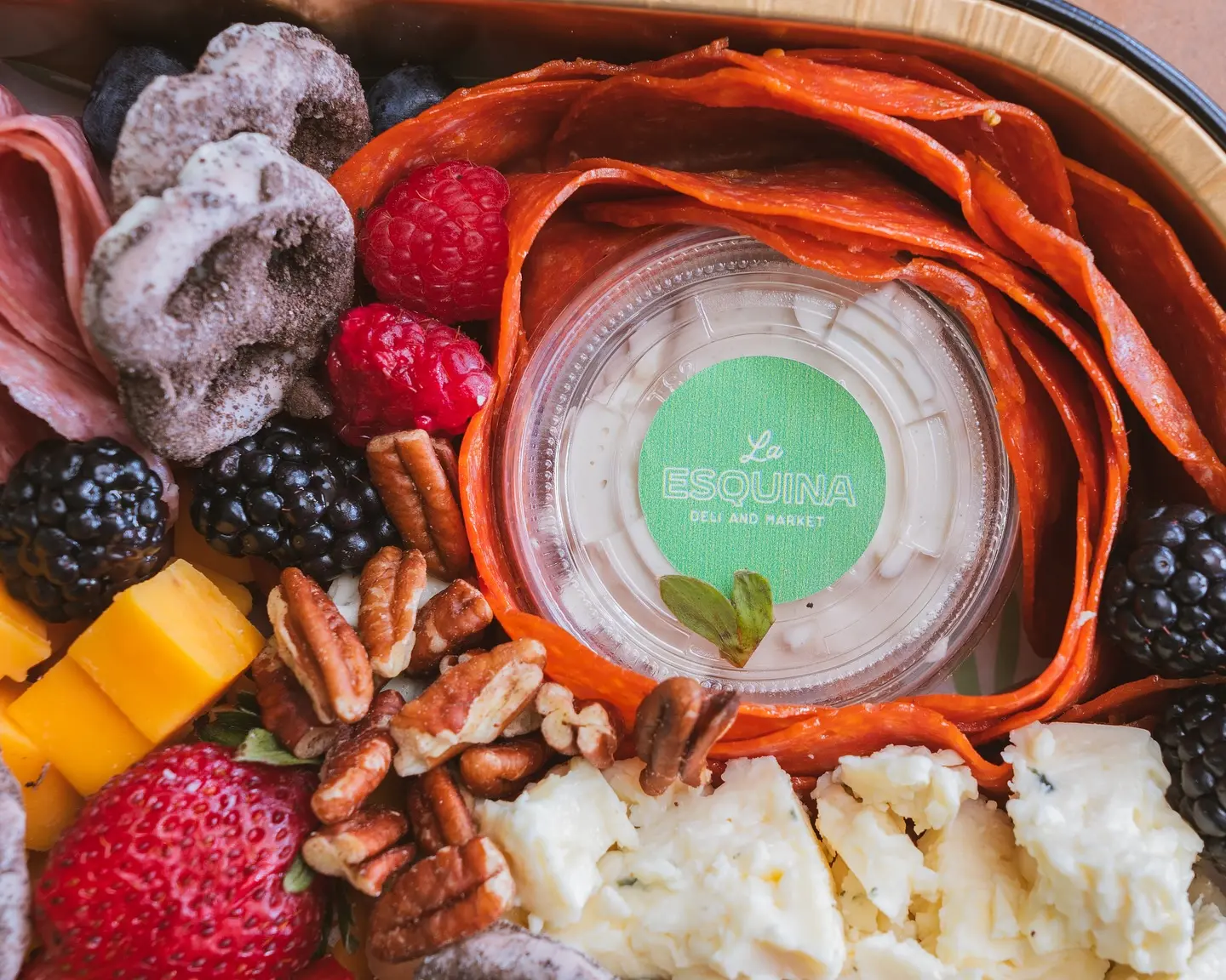 Baguette de ajo y hierbas, pepperoni, salami genoa, queso provolone, queso mozzarella, tomate, mix de lechugas orgánicas, mayo con pesto de albahaca y vinagreta italiana.